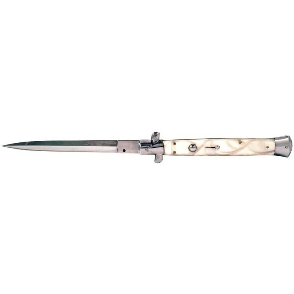 13″ Godfather White Pearl Stiletto Automatic Knife Dagger. Blade: 6″ Overall: 13″ Closed: 7″