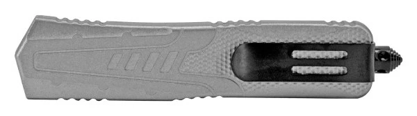 9″ Angel Silver OTF Automatic Knife Black Tanto Serrated. Blade Material 440 Stainless Steel Blade Type Serrated Folding Action Out the Front Handle Construction Stainless Steel Features Belt Clip, Glass Breaker, and Nylon Carrying Case Blade Length 3.5″ Handle Length 5.5″ Overall Length 9″