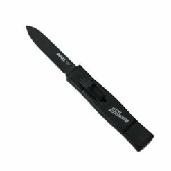 The AKC X-TREME made with modern materials and an aggressive italian design increased the standard of their OTF production. This new automatic model “EVO”, short for EVOLUTION, is the modern version of an old OTF Angelo Campolin Sr. made in the 70’s for the Solingen/Germany company Otello. The ergonomic silver handle and black button are made using solid CNC worked 6061-T6 aircraft aluminium. The plain grind blade on this switchblade is made of AUS-8 japanese steel with a HRC of 58-59 and has a PVD coated finish. It includes a black pocket clip. This OTF fires fast and has minimum bladeplay. Overall Length: 21.5 cm – 8.46″ Blade Length: 9cm – 3.54″ Blade Thickness: 3mm – 0.12″ Weight: 120gr – 4.2ozBlade Material: AUS-8 Japanese Steel Handle Material: Aluminium Made in: Taiwan