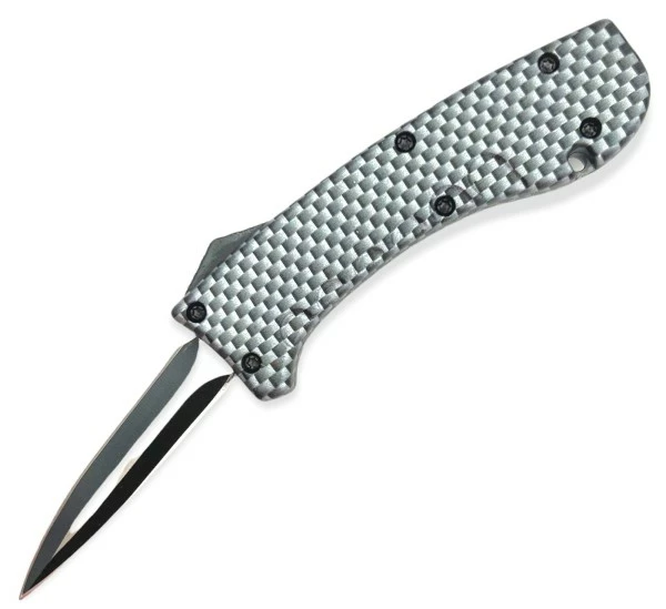 Covert Ops Mini D/A OTF Automatic Knife Carbon Fiber Karambit. Lifted traction ridges 5.5 inch overall length 2.0 Blade length D2 steel Amazing value Belt clip