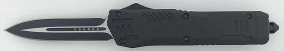 Covert Ops USA Black D/A OTF Automatic Knife 2 Tone Dagger. Specifications: Overall Length: 9.5 inch Blade Length: 3.75 inch Handle Length: 5.75 inch Blade: Dagger Point, Stainless Steel Handle Color: Black Handle Material: Stainless Steel, Features: Large Handle, Stainless Steel Blade, Out The Front Blade Release, Heavy Duty Zinc Aluminum Alloy Handle, Glass Breaker, Pocket Clip, Nylon Pouch with Belt Look and Side Release Buckle Limited Lifetime Warranty