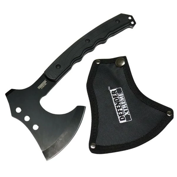 Defender-Xtreme Tactical Hunting Axe Crafted Using High Quality Steel 9.5″ Overall Length 7″ Handle Length 3.5″ Blade Length Nylon Sheath Full Tang All Black Handle & Blade Hunting Axe Collectable Stainless Steel Blade Heavy Duty Ultra Sharp Blade Protected With Sheath for Keeping it a safe Survival Axe Hunting Gear