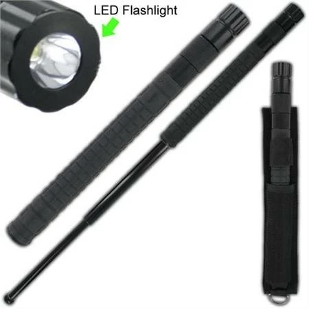 This Heat Treated Tempered Steel Tactical Square Grip Flashlight Baton 26 inch Baton by Azan offers a powerful, easily deployable and compact style finish. Featuring seamless alloy steel heat tempered telescopic tubing; this bone crushing non-glare black finish batons fit the perfect self-defense weapon for everyday needs and features a Weather Proof LED security Flashlight at the butt which works great for security guards, police or other law enforcement personals especially when you are in the dark. With a great tensile strength and bending strength, we have put this baton to the ultimate test to see if it will break or bend and we use a 4 Ton vehicle to roll over it, back and forth, and the results were astonishing. To our surprise, the baton came back straight as from the manufacturer with several rolls from the vehicle. The bending strength makes this baton indestructible but yet offers great flexibility when the need arises. It provides the carrier with a confident attitude that he or she carries a powerful deterrent to ward off any attacker. It is one of the most sophisticated tactical defense weapon known to civilians, law enforcements officials and security guards in the market. The handle features a durable shock resistance square rubber grip. The sturdy rubber grip offers more excellent grip in wet or dry environment. Easily carried and readily available, this Heat Treated Tampered Steel Square Rubber Grip Flashlight Baton 26 in sports an all-weather proof flashlight which you could be used in the any condition. This baton feels light weight in your hands but will pack a powerful punch to your attackers and it also works great when walking the dog, jogging or just exercising outdoors in the night. This baton comes equipped with a black nylon carrying case with belt loop and hanging ring. Overall Length: 26 inch