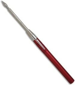 Guard Father Spike OTF Automatic Icepick Red with a pocket clip Spike Material: Stainless Steel RC Hardness: 55-57 Spike Thickness: .25 inches Spike Length: 3.5 inch Handle Material: T6 Length Open: 9.5 inches Weight: 3.4 oz.