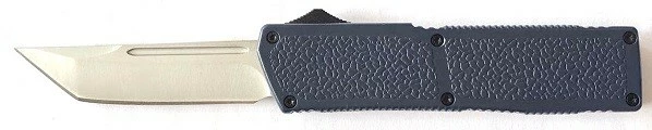 Lightning Black D/A OTF Automatic Knife Satin Tanto. Dual Action 440 stainless steel 3.25 inch blade with a pocket clip on the side of the handle. 8 inches overall length with strong spring action. This knife is made in taiwan.