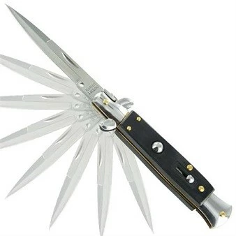 Ours Silver with Charcoal Handle Stiletto offer you a perfectly made stiletto with cutting edge stainless steel dagger style blade, which features a nail nudge on the blade. The handle featured a thick synthetic black charcoal insert on both sides, riveted down to the brass inlay framing. The 3.75 inch dagger style stiletto blade has “Italian Milano” printed on the front side and it includes a durable black nylon sheath with belt loop. Overall length: 8.5 inch