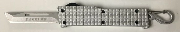 Mini Firecracker Silver D/A OTF Automatic Knife Silver Hook Tanto. Double action in and out with a push of the button. Blade Material: 440 Stainless Handle Material: Aluminum Coloring Method: Anodizing Overall: 5.25″ Blade: 1.875″