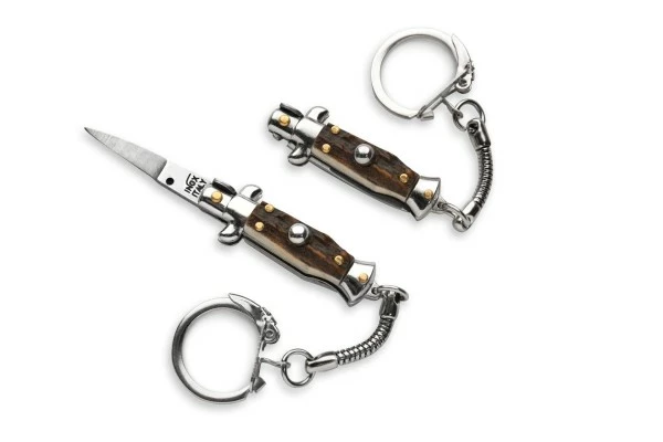 SKM 2.75″ Keychain Stiletto Automatic Knife Stag. A key chain stiletto that really works. Stag handle and stainless steel blade. Made in Italy Overall Length: 2.75″ Blade Length: 1.2″ Closed Length: 1.55″ Weight: 15 gr.