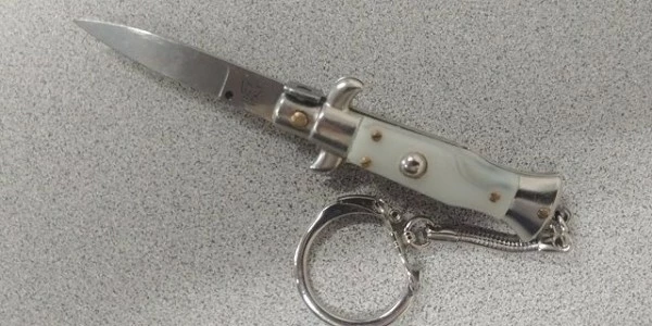 SKM 3.75″ Stiletto Automatic Knife White/Blue Keychain. A key chain stiletto that really works. White/Blue handle and stainless steel blade. Made in Italy Overall Length: 3.75″ Blade Length: 1.75″ Closed Length: 2.25″